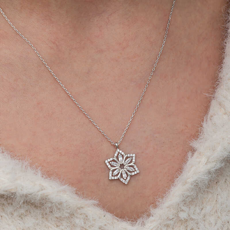 Gümüş Baget Taşlı Çiçek Kadın Kolye