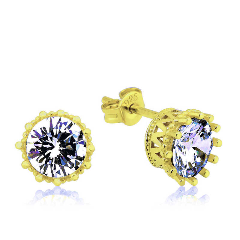 Gümüş Gold Tırnaklı Tek Taş Çivili Kadın Küpe