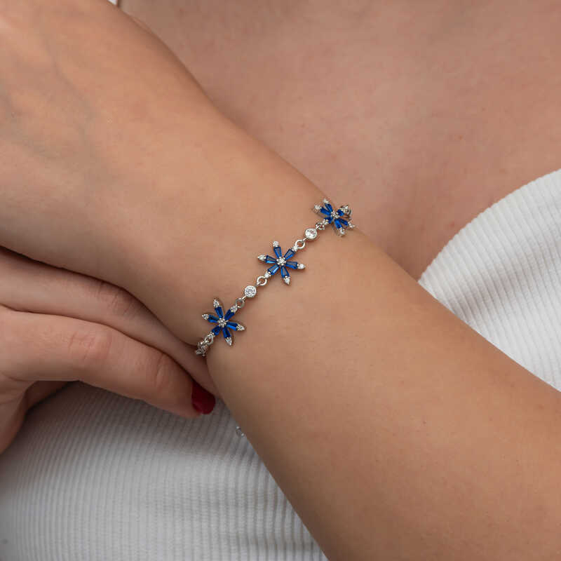 Gümüş Lacivert Lotus Çiçeği Kadın Bileklik