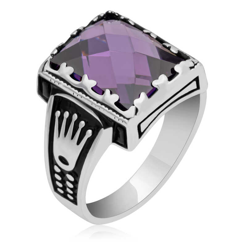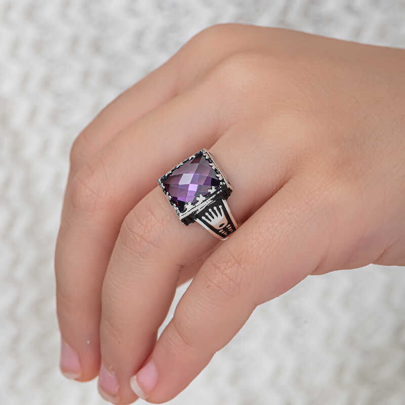 Gümüş Lila Zirkon Taşlı Çocuk Erkek Yüzük