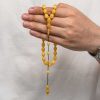 Kehribar, çam ağacı reçinesinin toprak altında uzun yıllar boyunca birikerek oluşan bir maddedir. Hemen hemen taş ile aynı sertliktedir fakat yoğunluğu düşüktür. Çam kokusu yayar. Oluşumu uzun zaman aldığından ve yapay olarak yapılamadığından değerli bir maddedir. Sıkma kehribar ise kehribar taşından farklı olarak onun özelliklerini taşıyan, görüntü itibariyle ona benzeyen fakat gerçek olmayan bir malzemedir. Ülkemizde ve dünyanın bir çok yerinde kehribar taşından çeşitli malzemeler üretilmiştir. Ülkemizde en yaygın olarak tesbih üretilmektedir. Kehribar tesbihler elde ısındıkça kehribar benzeri bir koku verir ve renk değiştirir. Bir çok rengi vardır. Hatta iki rengin birleşiminden oluşan kehribar tesbih modelleri de vardır.Ülkemizin güzide tesbih ustaları bu malzemeyi sıklıkla işlemek suretiyle çeşitli sanat eserleri meydana getirirler. Bu tesbihler de koleksiyonerler tarafından alınıp satılmaktadır. Sıkma kehribar tesbih modeli de günlük hayatta kullanılabilecek çok şık bir tesbih çeşididir. Özel günlerin vazgeçilmez hediyesi sıkma kehribar tesbihler erkekler için doğum günü, sevgililer günü ve babalar günü gibi özel zamanlarda hediye olarak tercih edilebilir.Sıkma kehribar tesbih modeli diğer kehribar tesbih modellerinde olduğu gibi tamamen el emeği ile imal edilmiştir.